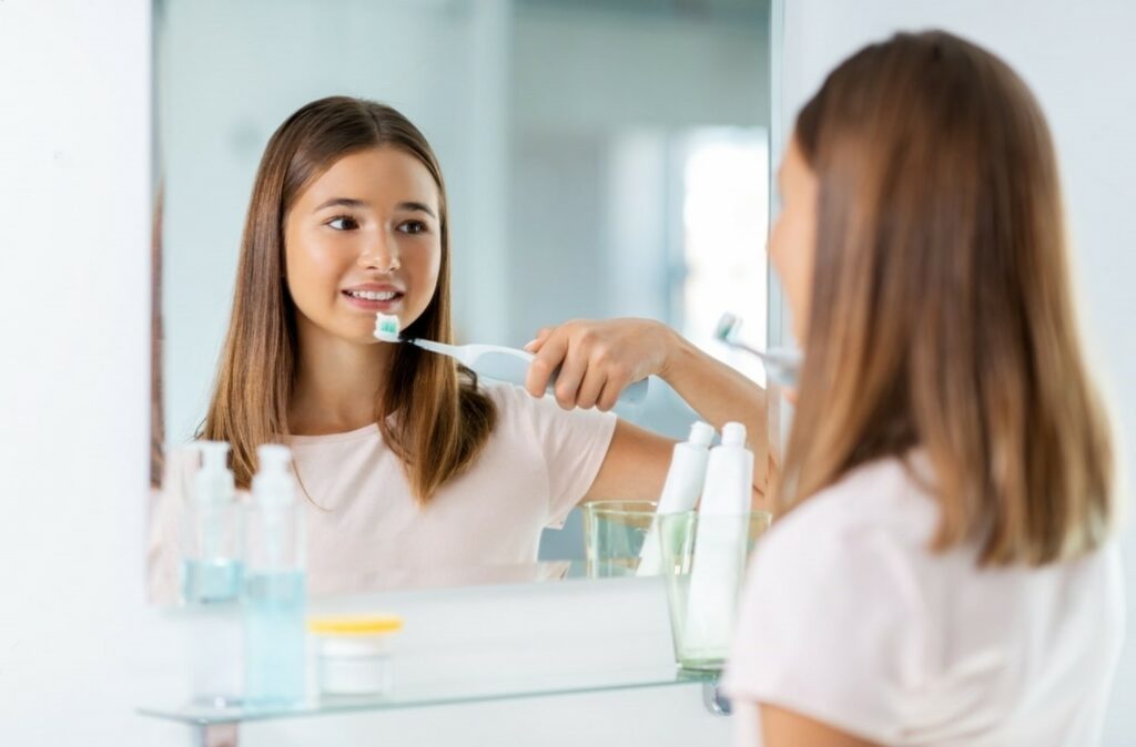 Electric toothbrushes can be an excellent option for kids who struggle with manual brushing, are looking to be more independent with cleaning their own teeth, or those with orthodontic appliances. When recommending an electric toothbrush, consider features such as a small brush head, gentle vibrations or rotations, and a built-in timer. These brushes can make brushing more engaging and effective for children. Some have linked smartphone aps where kids can track their brushing, or even arrange to have replacement brush heads shipped directly to their door every three months.